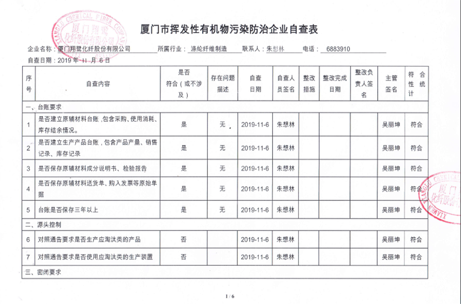 廈門市揮發(fā)性有機(jī)物污染防治企業(yè)自查表(2019年第三季度)