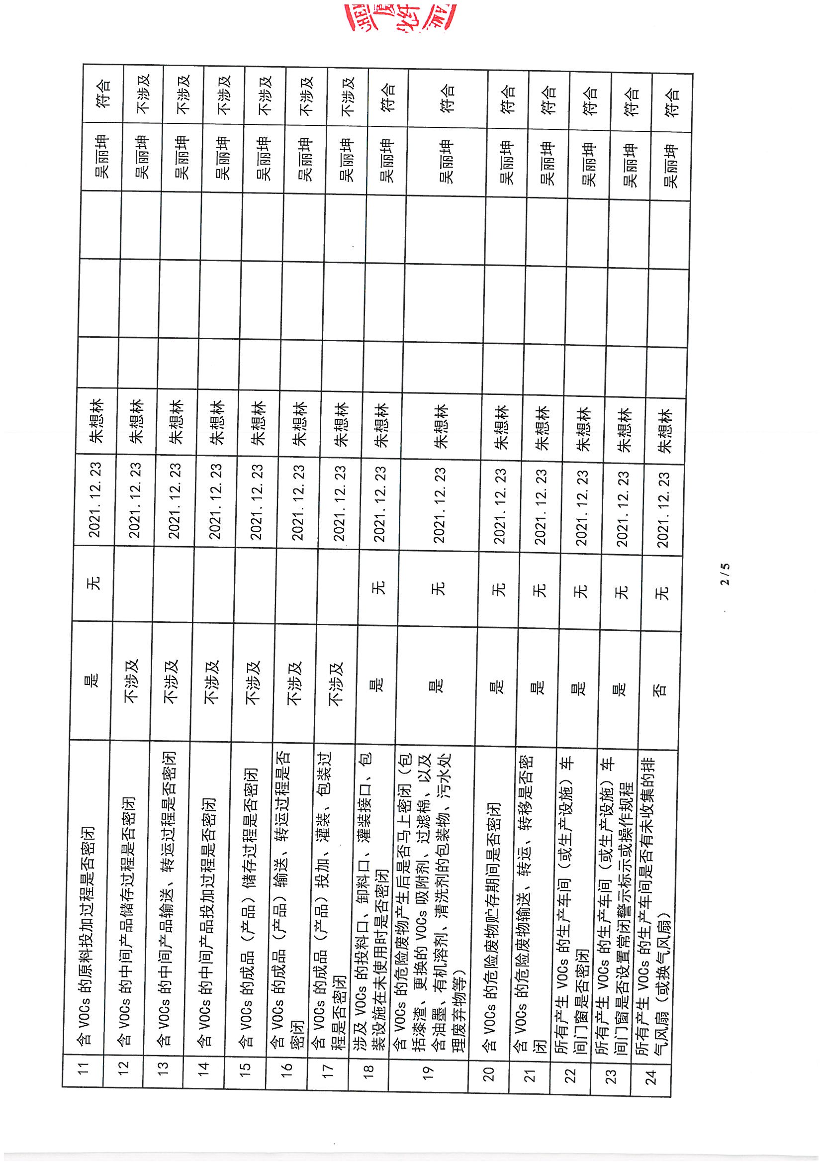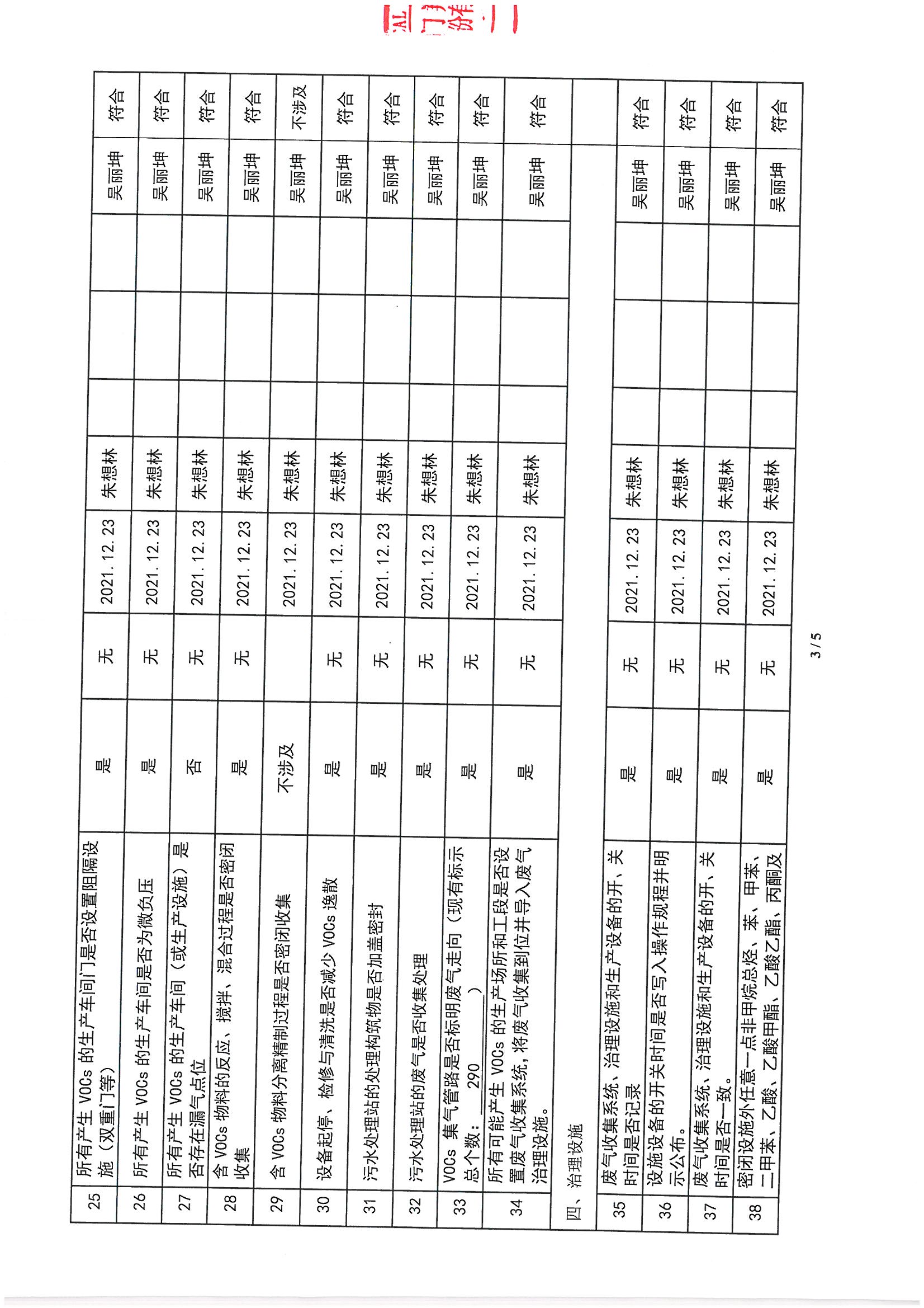 廈門市揮發(fā)性有機物污染防治企業(yè)自查表 (2021年 第四季度)
